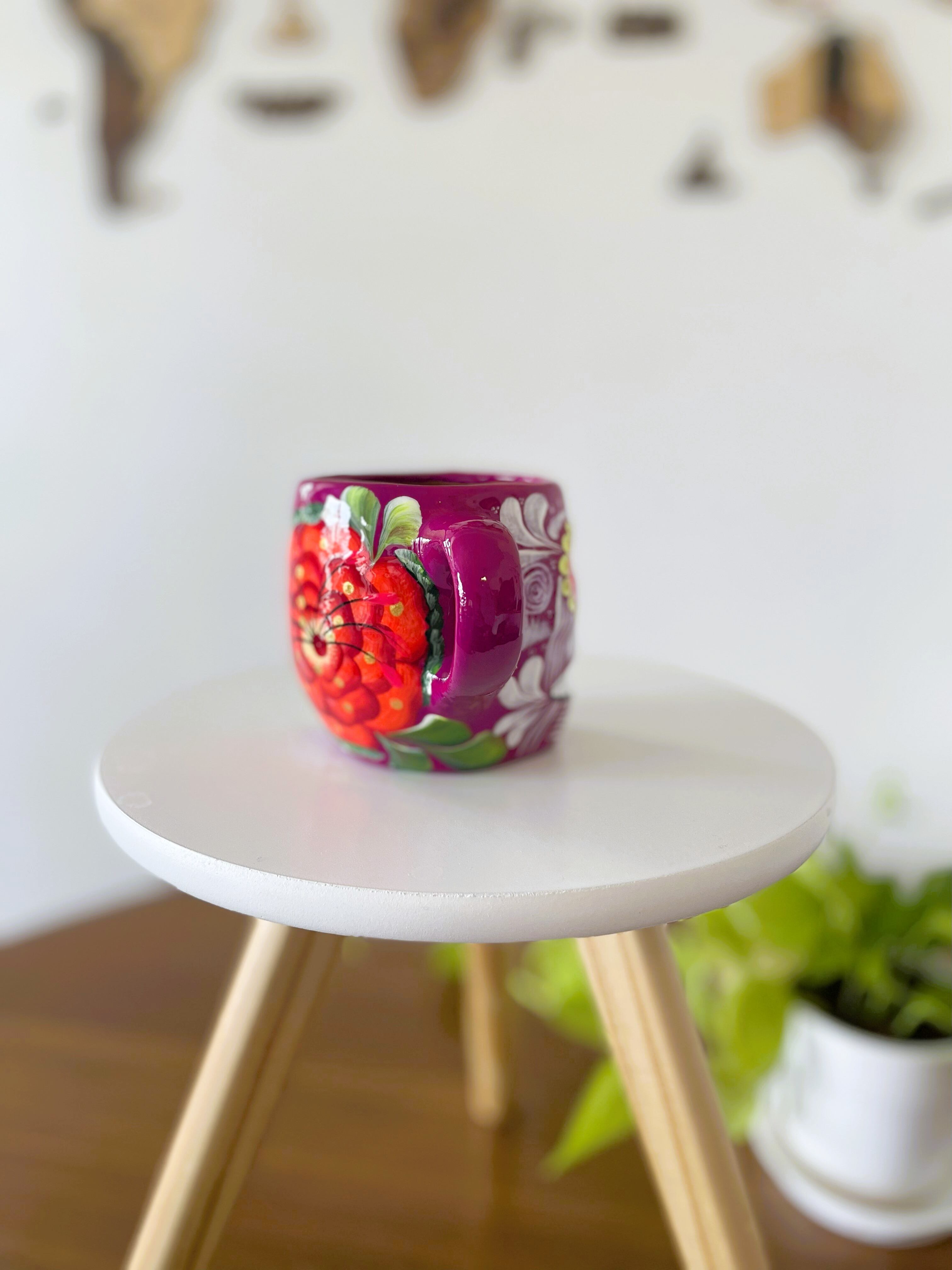陶器のカラベラのマグカップは、メキシコの伝統に根ざしたかつユニークな手書きデザインが魅力です。豊かな色彩と個性的な模様が施されており、飲み物を楽しむひとときを華やかに彩ります。家庭での使用はもちろん、友人や大切な方へのギフトにも最適なアイテムです。