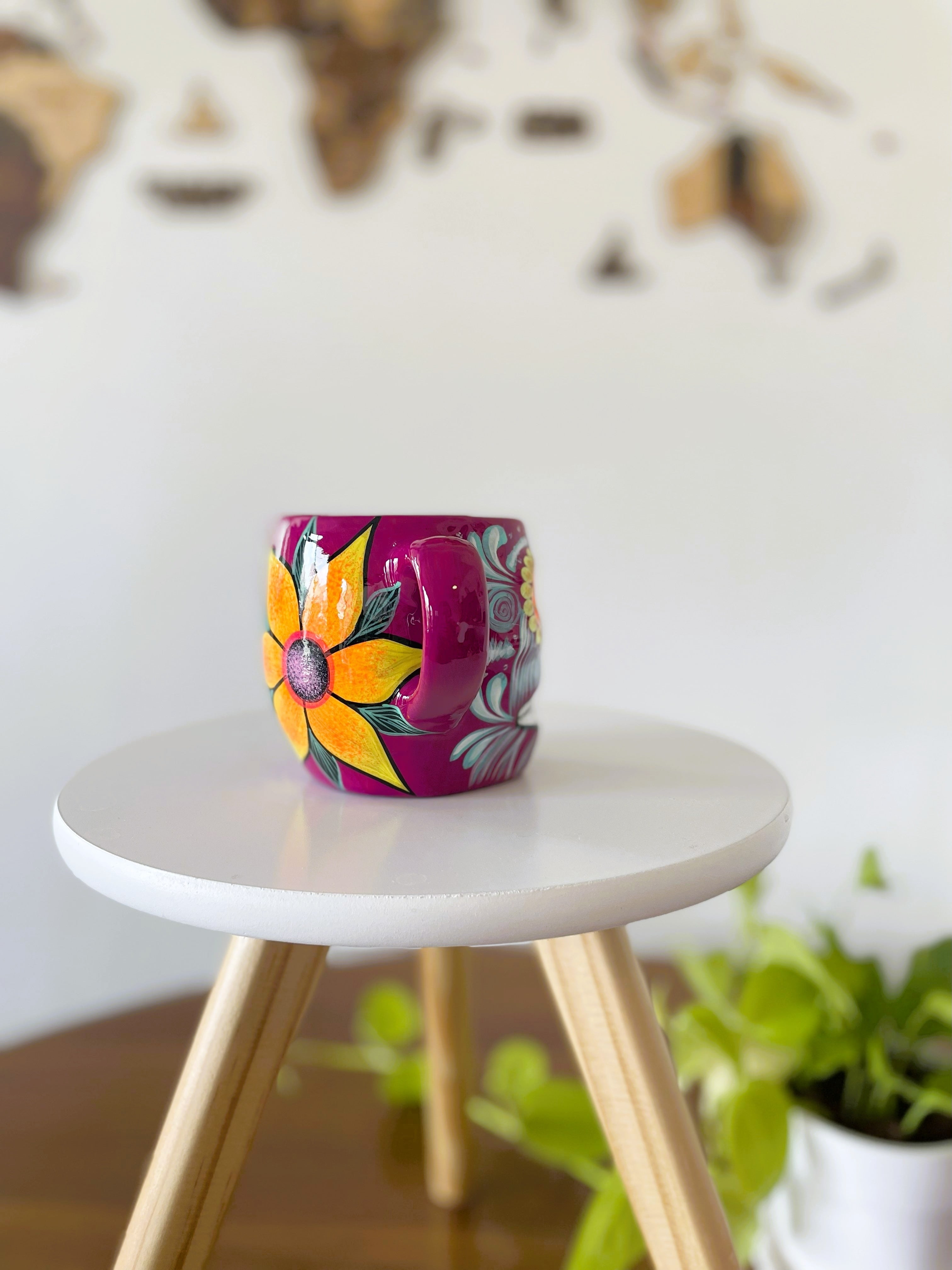 カラベラのマグカップ(ダークピンク&イエローフラワー)