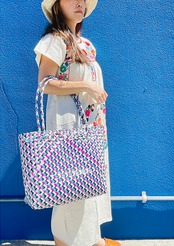 メルカドバック L は、軽い素材で作られたメキシコの伝統的な工芸品です。鮮やかな色使いが印象的で、丁寧に施されたデザインが日常使いにぴったりです。大ぶりな作りで、A4サイズが楽々入る大きさです。仕事用やお買い物、旅行などに大活躍するアイテムとなります!