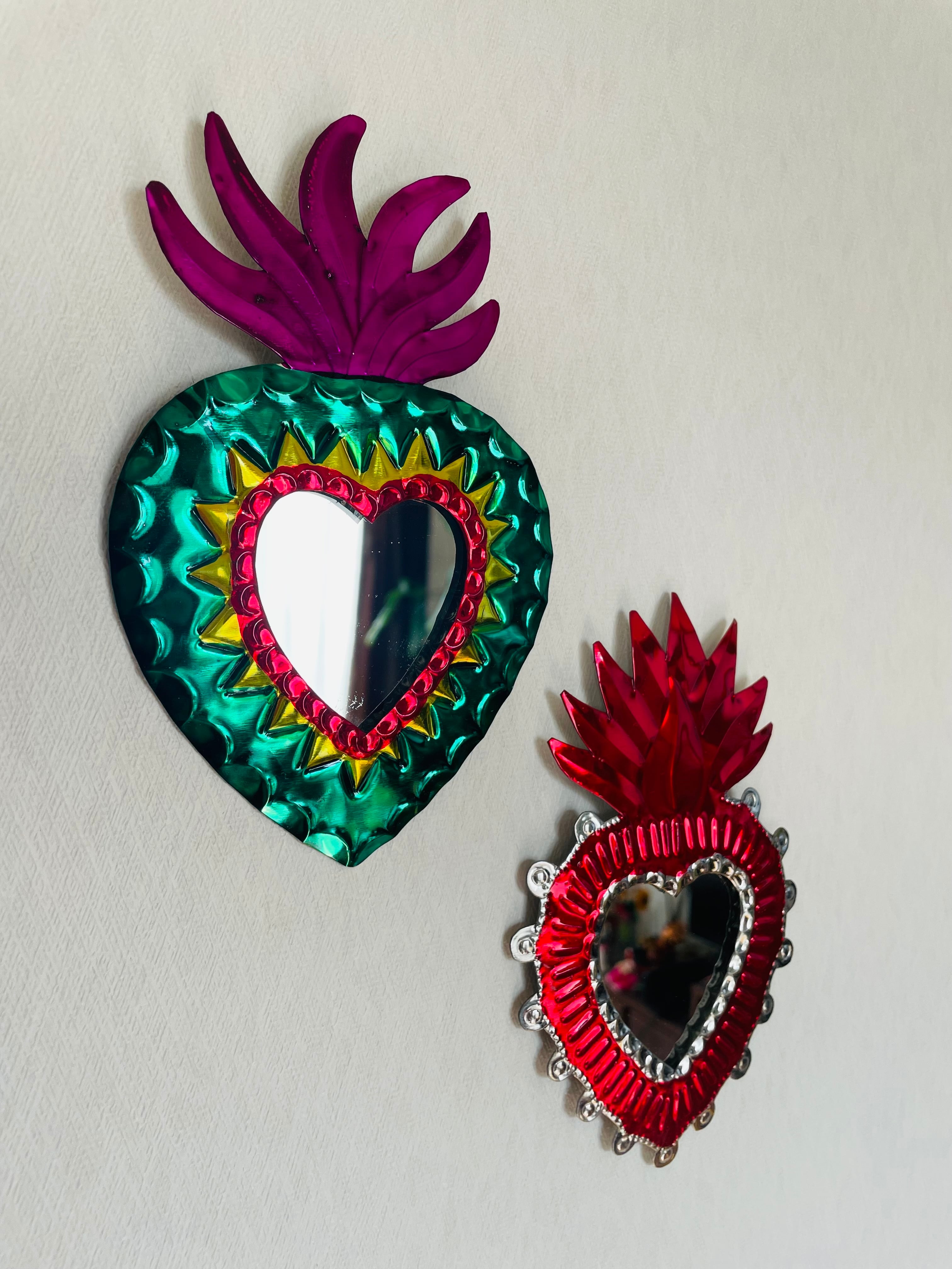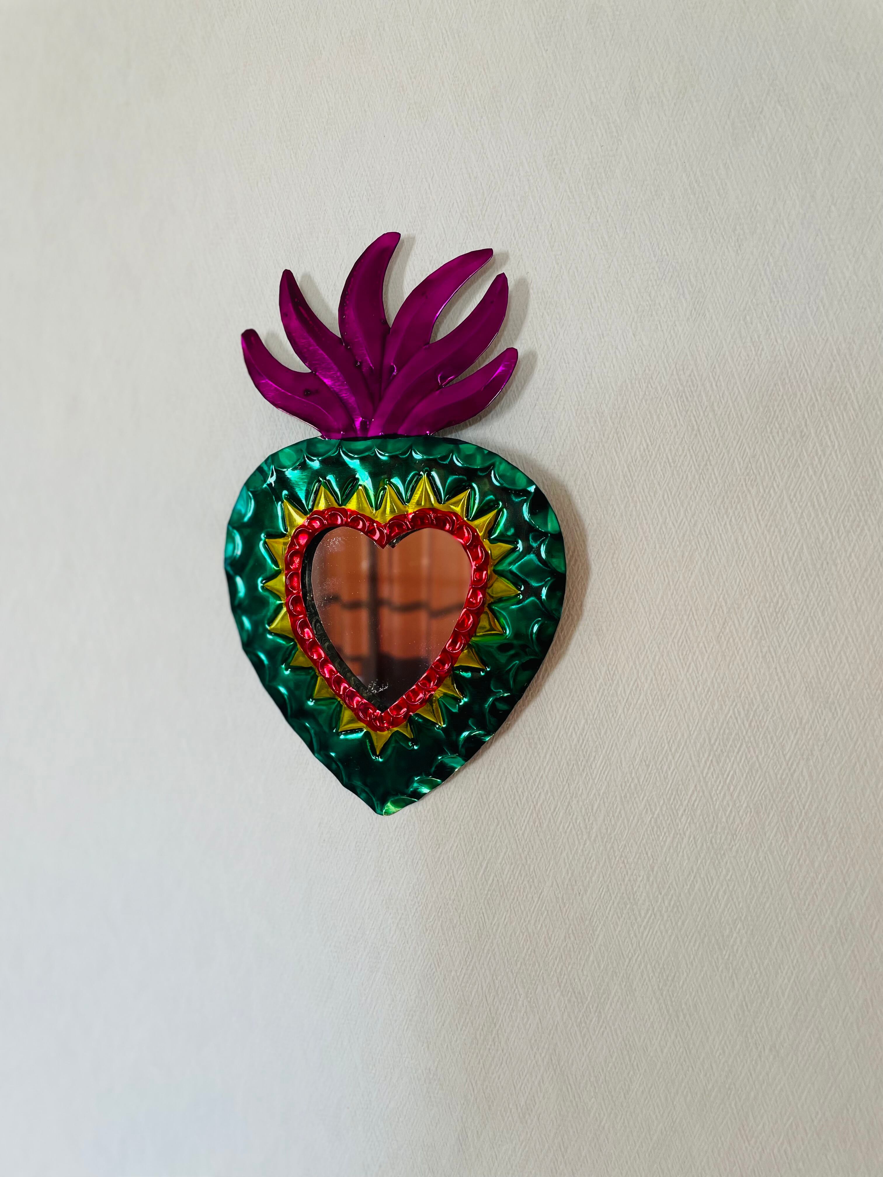 壁掛けミラーは、魅力的なハート型のデザインが特徴で、あなたのインテリアにハッピーを与える素敵なアイテムです。メキシコの職人が手がけるこのミラーは、壁に掛けることでお部屋を華やかに演出します。特別な空間を作り出すのにぴったりです!