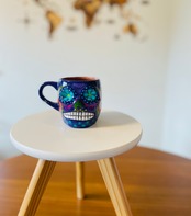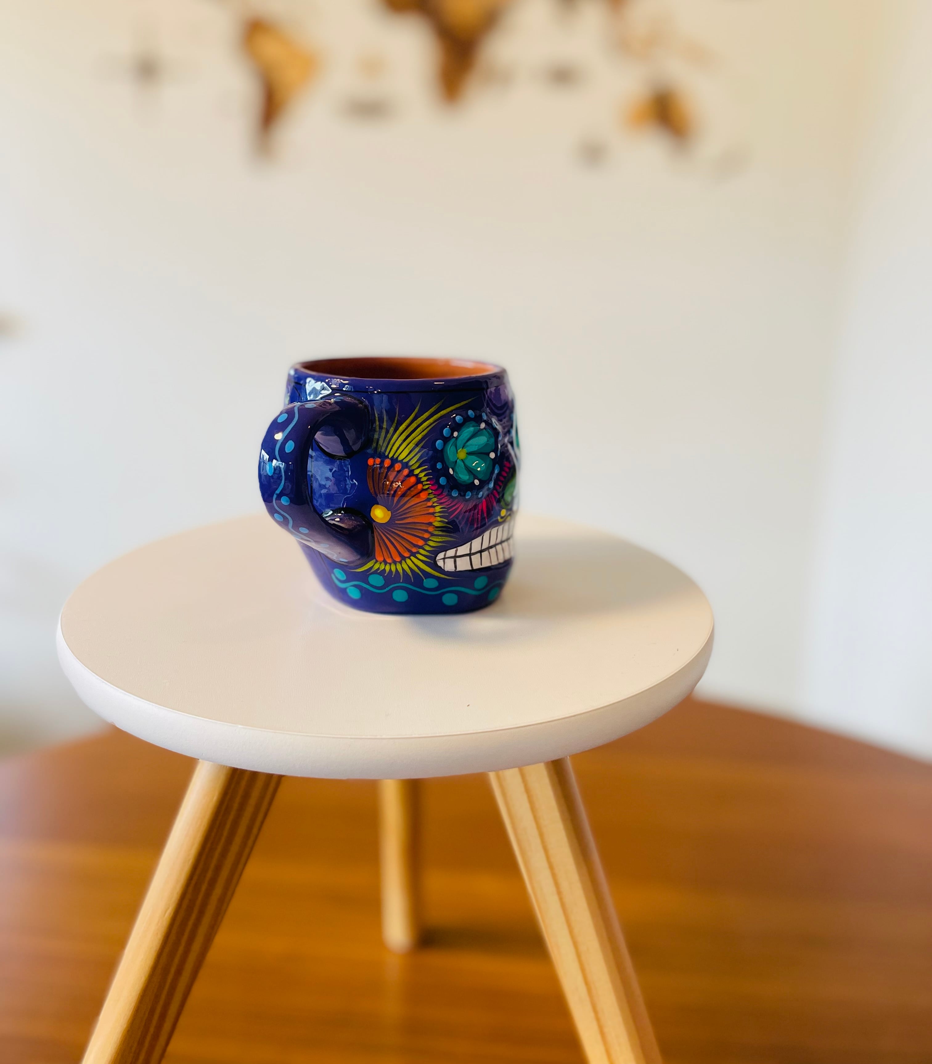 陶器のカラベラのマグカップは、メキシコの伝統に根ざしたかつユニークな手書きデザインが魅力です。豊かな色彩と個性的な模様が施されており、飲み物を楽しむひとときを華やかに彩ります。家庭での使用はもちろん、友人や大切な方へのギフトにも最適なアイテムです。