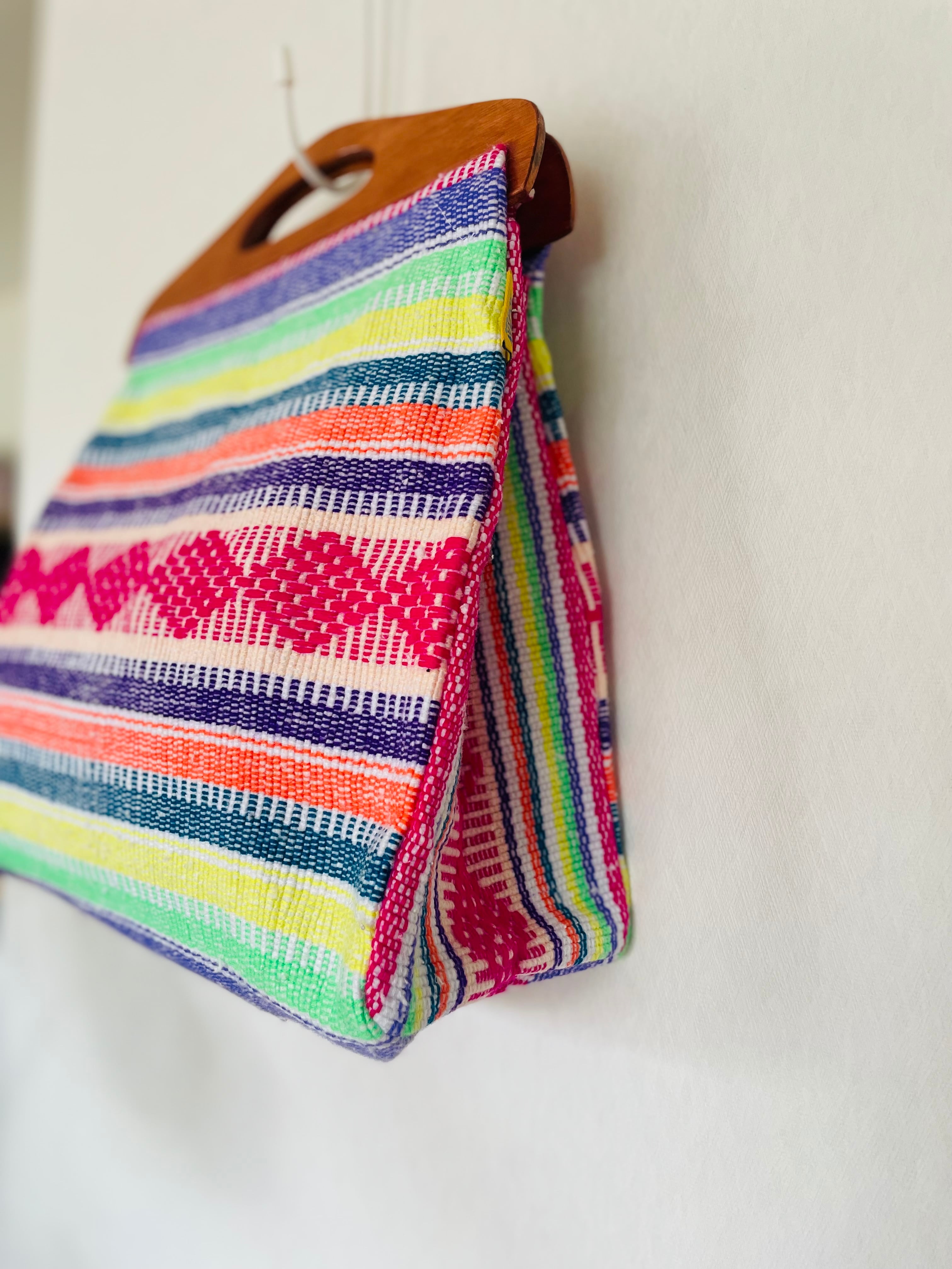 メキシコ布のクラッチバッグは、色鮮やかなメキシコ布を使用したスタイリッシュで魅力的なアイテムです。このバッグは、どんなシーンにも合うおしゃれなデザインで、特別なお出かけや日常使いにも活躍します。持ち手は温かみのある木製で、使い心地も抜群です。また、プレゼントとしても喜ばれること間違いなしです!