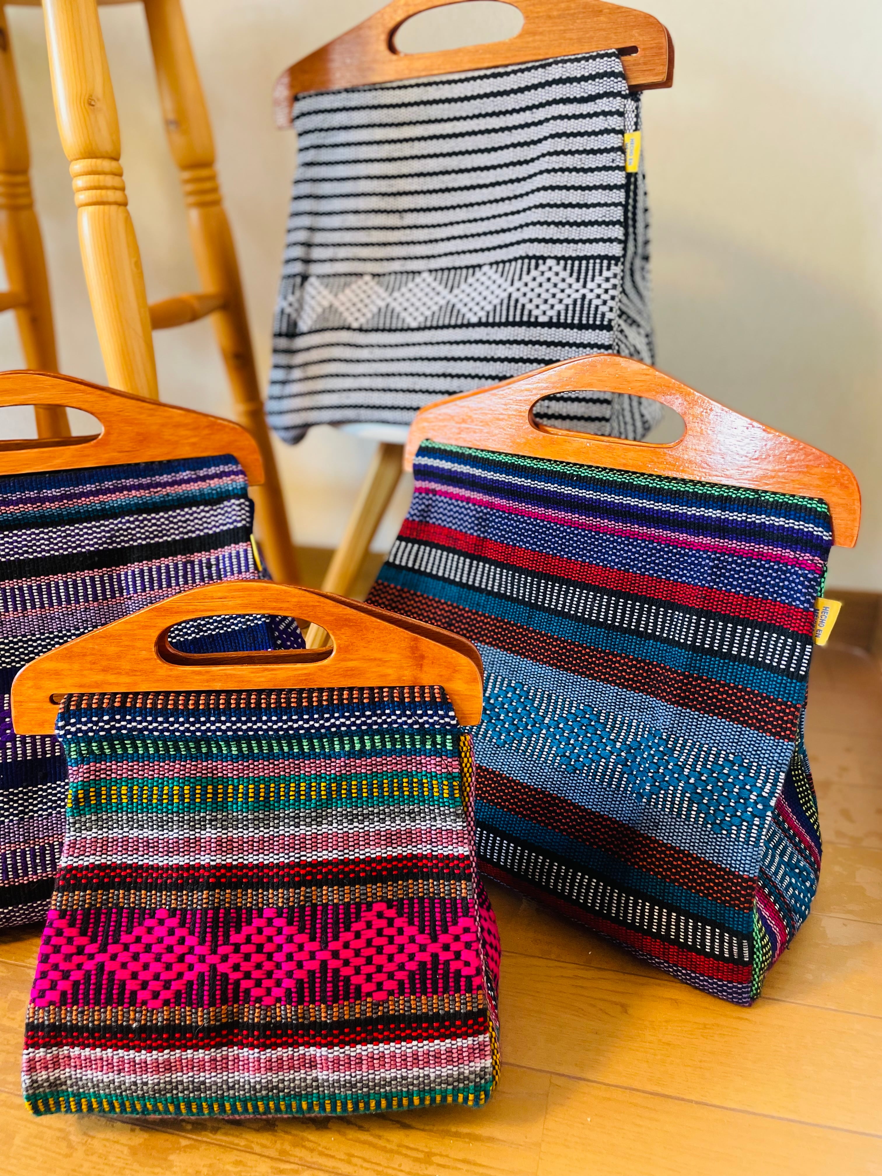 メキシコ布のクラッチバッグは、メキシコらしいデザインを使用したスタイリッシュで魅力的なアイテムです。このバッグは、どんなシーンにも合うおしゃれなデザインで、特別なお出かけや日常使いにも活躍します。持ち手は温かみのある木製で、使い心地も抜群です。また、プレゼントとしても喜ばれること間違いなしです!